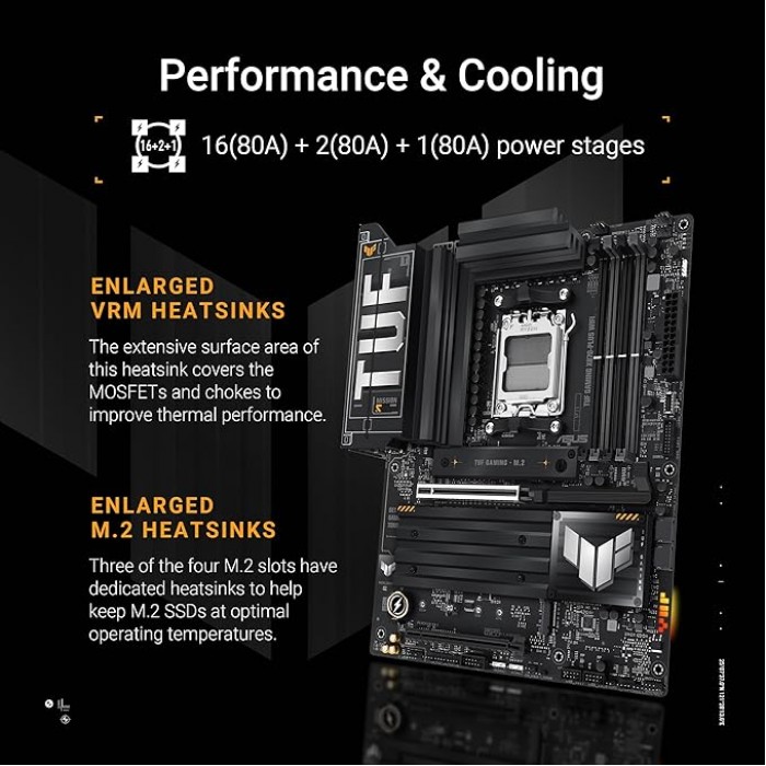 الكلمات الدليليلة ASUS TUF Gaming X870-PLUS WiFi AMD AM5 X870 ATX Motherboard, 16+2+1, 80A SPS Power Stages, DDR5, PCIe 5.0 Ready, Four M.2 Slots, Wi-Fi 7, 2.5Gb LAN, HDMI, USB4® 40Gbps, SATA 6 Gbps, USB 20Gbps Type-C