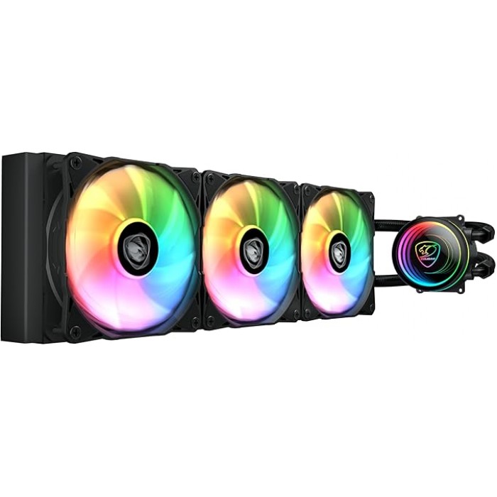 الكلمات الدليليلة Cougar Poseidon Elite ARGB 360 AIO Liquid Cooler Utteright Fins Design Rotatable Pump Head For Logo Orientation Noise 33.5 dB(A) - Black